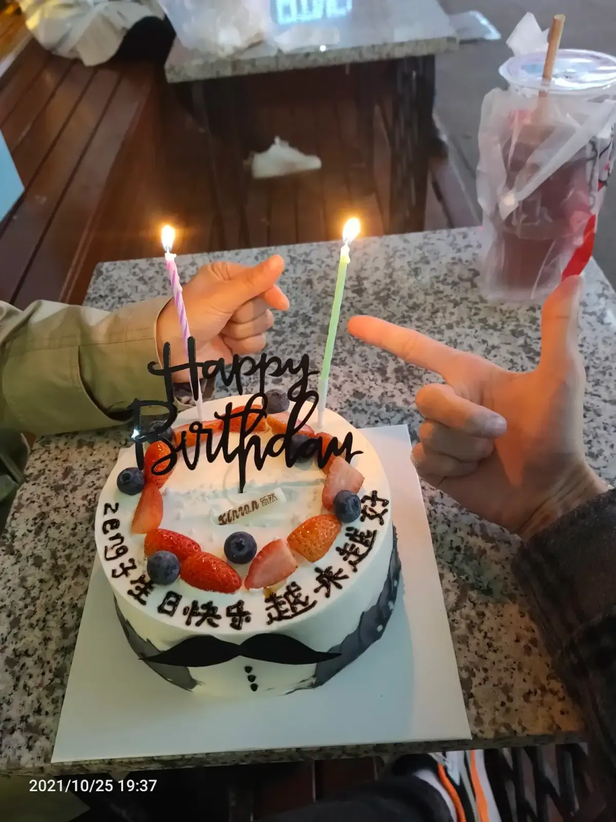 下班和范去取蛋糕,取完蛋糕去买了炸馍,买了脆皮五花肉,又买了一杯蜜雪冰城热红茶